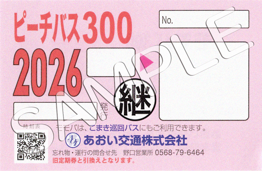 今後、あおい交通本社を始め、時刻表記載の販売協力店へご継続定期券(モモパ)をお受け取りにお越しの際は、必ず、現在ご利用の定期券をご持参くださいますようお願い申し上げます。